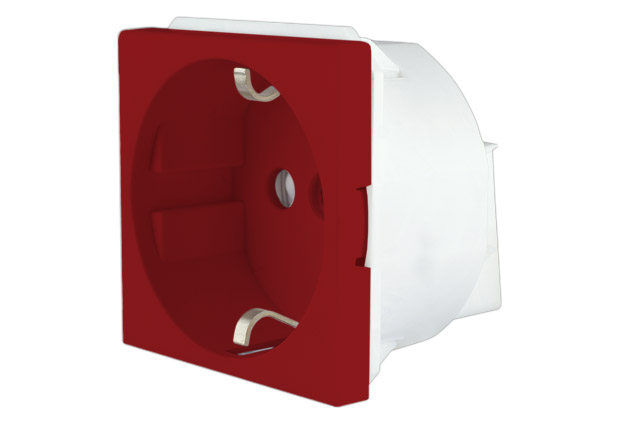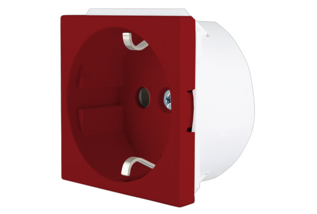 Priključnica ŠUKO + KS 2P+E 16A 250V~ namenska 2M 2P+E šuko 16A 250V~ Usaglašeno sa standardom SRPS IEC 60884-1, CEE7 Vijčano pričvršćivanje provodnika preseka 1,5-2,5mm2 KS ugrađena zaštita od dodira kontakata