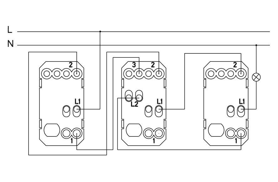 Sklopka ukrsna 10AX 250V~ 2M 10AX 250V~ Usaglašeno sa standardom SRPS EN 60669-1 Vijčano pričvršćivanje provodnika preseka 1,5-2,5mm2